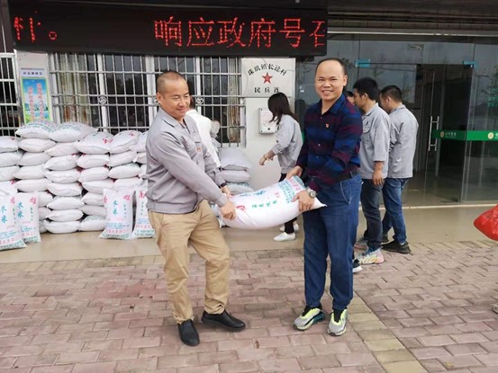 韶關科藝創意工業有限公司前往扶貧點購買貧困戶大米4000斤,板鴨25只,花生油200斤。