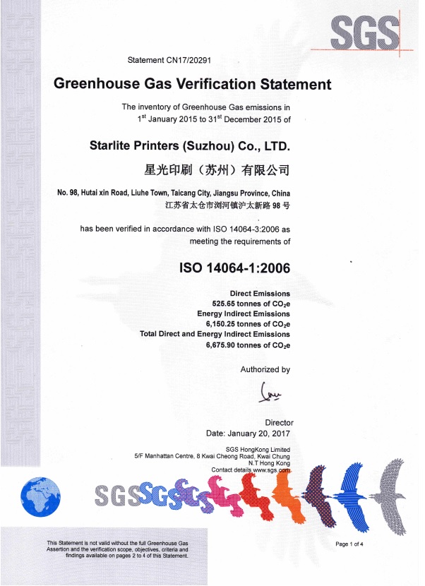 Starlite Suzhou has successfully been verified by SGS on its Greenhouse Gas Emission Statement. We will keep striving to help protecting our beautiful planet.