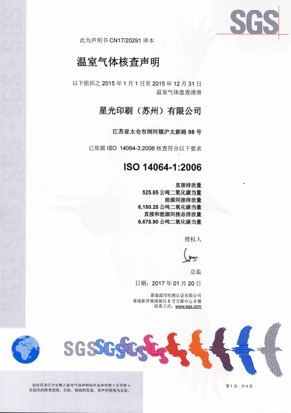 蘇州星光成功通過SGS對其溫室氣體排放聲明進行的驗證。 我們將繼續努力,爲保護環境出力。