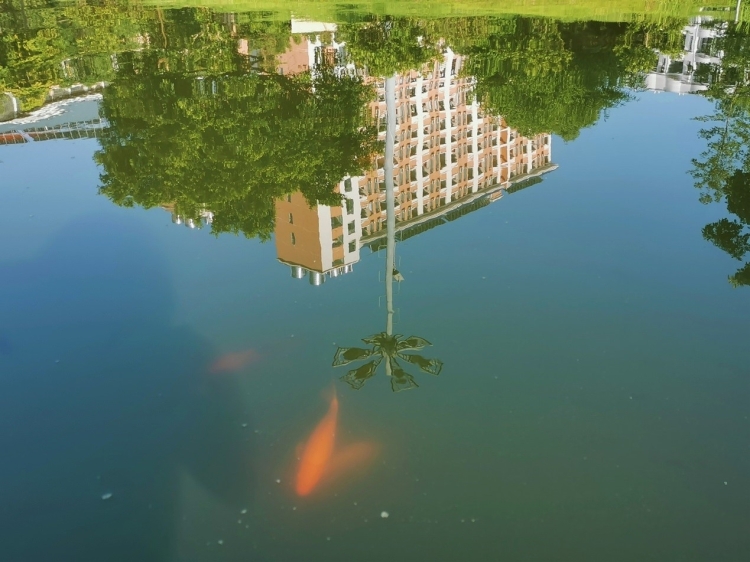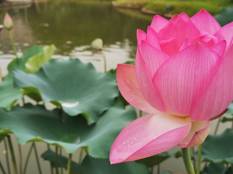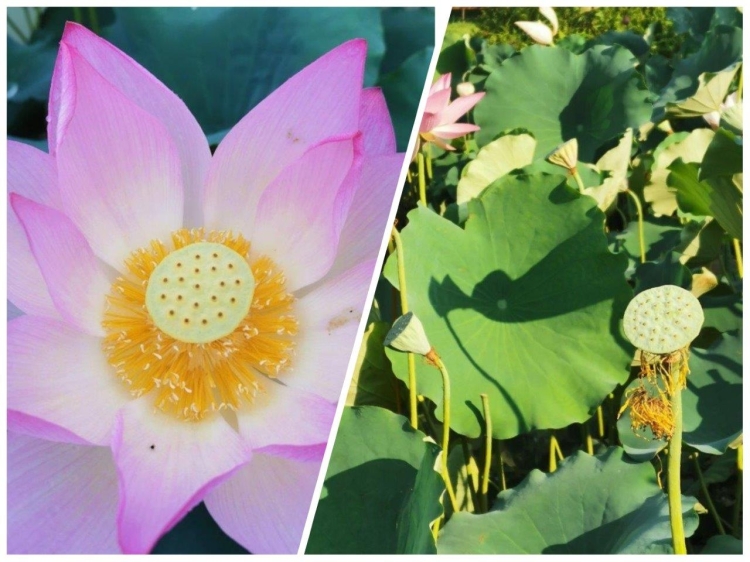 The lake reflected everything it saw, the lotus leaves round and big , and the lotus flowers in full bloom beauty.