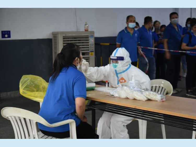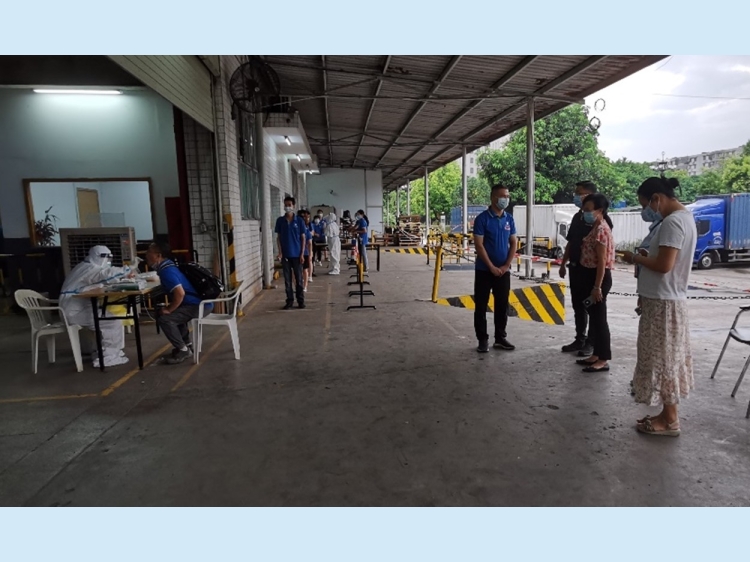 Director He of Xiagang sub district office visited Guangzhou factory to set up a special session to facilitate staff nucleic acid sampling