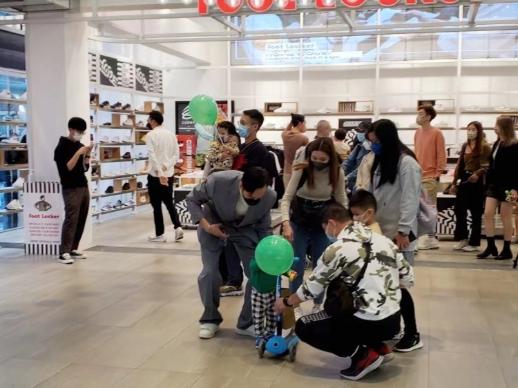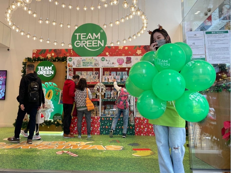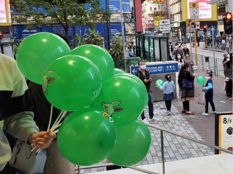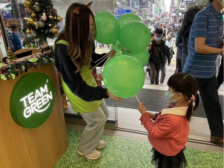 送TEAM GREEN汽球给小朋友, 这里的气氛很开心!